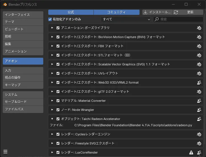 Radeon 520をBlenderで使う(オンボード)
